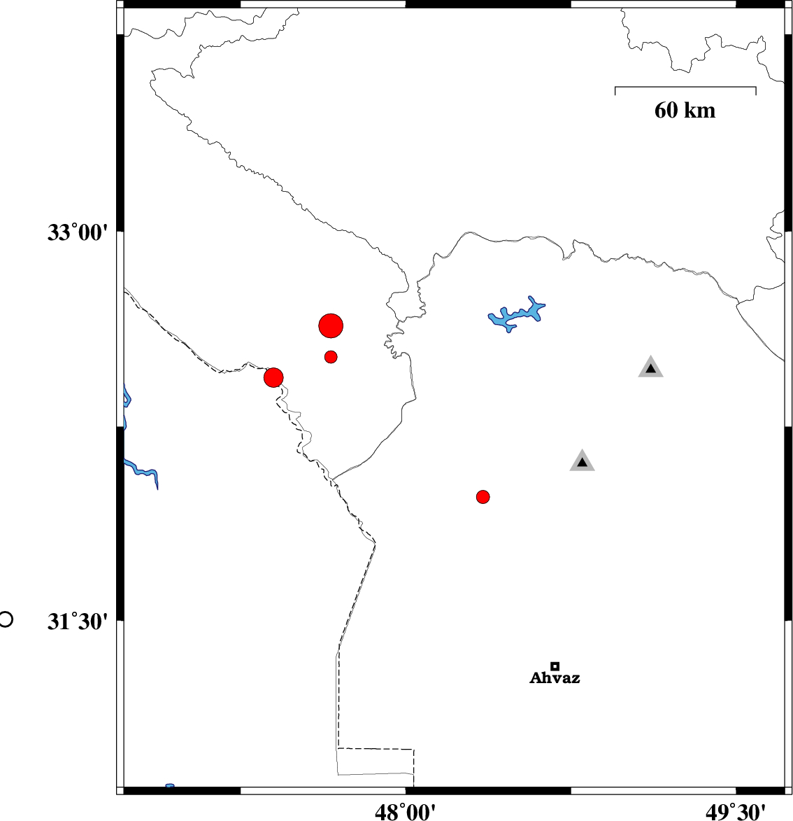2010/01/11 | 01:08:17.0 | 04:38:17.0 | 31.89 | 49.17 | 27 | ML2.7 | 13 km West of Masjed Soleyman, Khoozestan Province |
