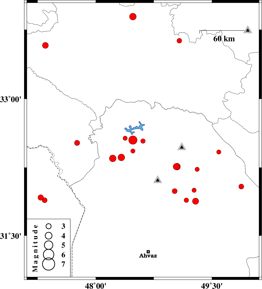 2010/01/11 | 01:08:17.0 | 04:38:17.0 | 31.89 | 49.17 | 27 | ML2.7 | 13 km West of Masjed Soleyman, Khoozestan Province | ||