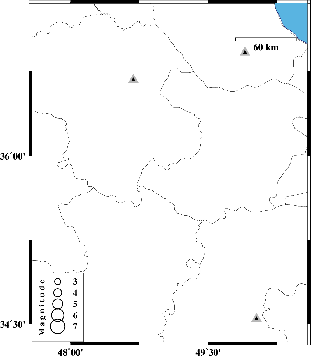 2010/01/22 | 02:33:37.5 | 06:03:37.5 | 35.84 | 49.08 | 31 | ML2.6 | 35 km South-West of Abhar, Zanjan Province |