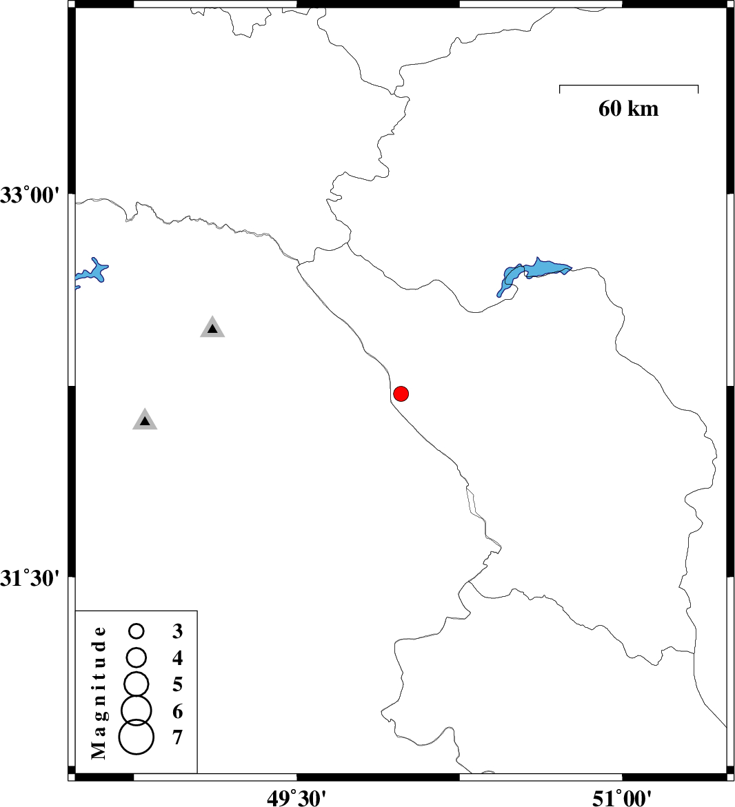 2010/01/28 | 13:35:42.1 | 17:05:42.1 | 32.22 | 49.98 | 44 | ML:3.1 | 30 km South-West of Chelgard, Chaharmahal Bakhtiari Province | ||