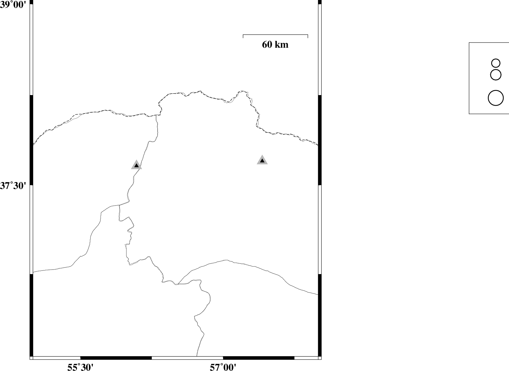 2010/01/30 | 13:50:04.2 | 17:20:04.2 | 37.25 | 57.77 | 14 | ML:3.4 | 20 km South-West of Shirvan, Khorasan(north) Province | ||