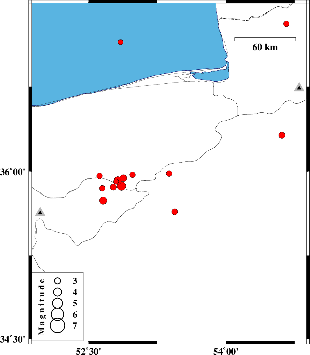 2010/01/20 | 17:37:30.1 | 21:07:30.1 | 35.94 | 52.88 | 6 | ML3.4 | 23 km North-East of Firuzkuh, Tehran Province | ||