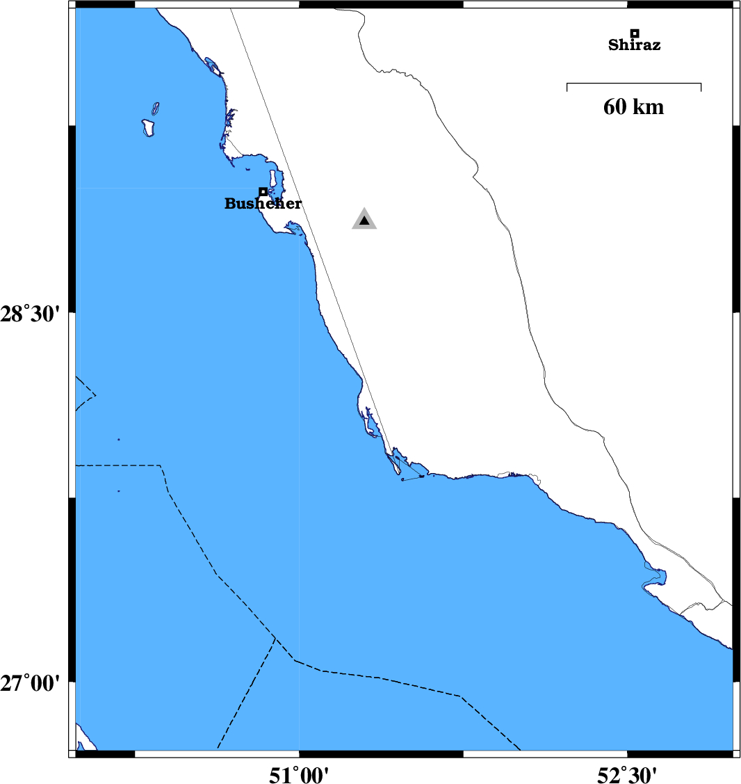 2010/02/01 | 22:54:37.2 | 02:24:37.2 | 28.22 | 51.48 | 15 | ML:3.9 | 48 km South-East of Khormog, Bushehr Province |