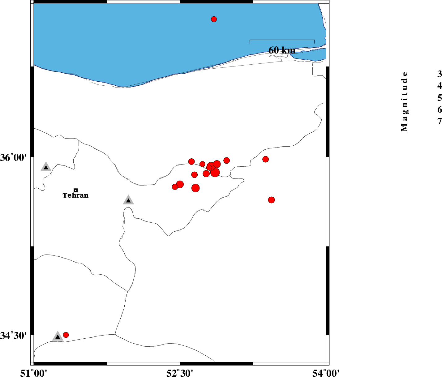 2010/01/20 05:20:05.4 08:50:05.4 35.8752.8614 ML4.2 16 km North of Firuzkuh, Tehran Province