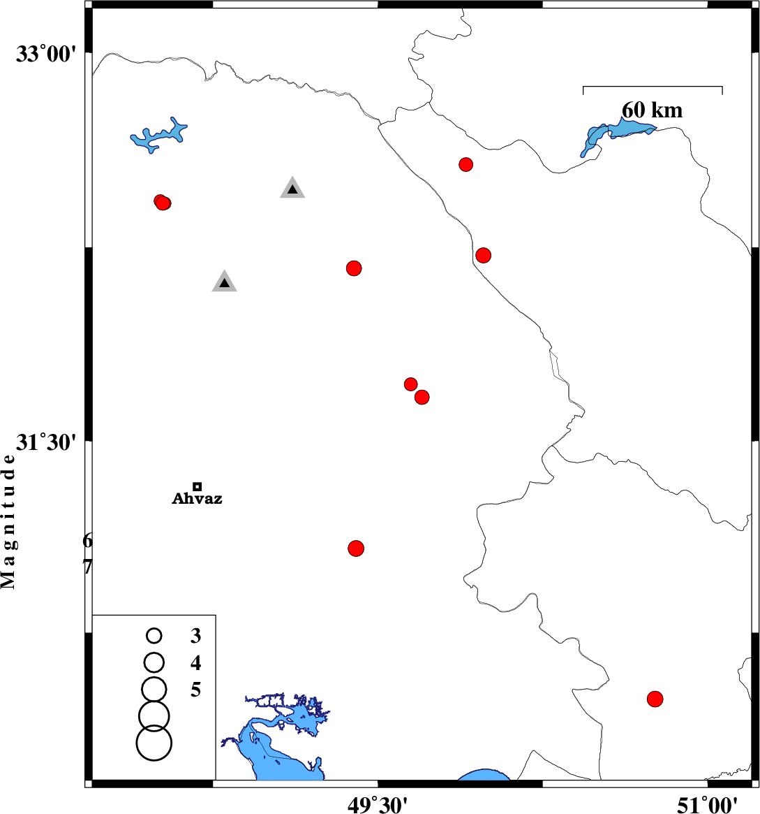 2010/01/30 | 11:56:46.3 | 15:26:46.3 | 31.08 | 49.4 | 37 | ML3.3 | 29 km South-West of Ramhormoz, Khoozestan Province | ||