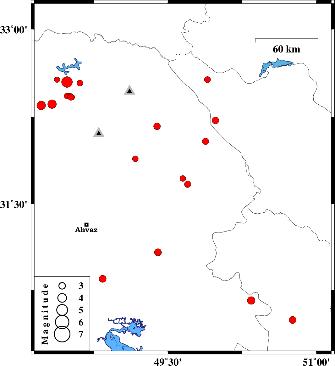 2010/01/21 | 10:30:57.1 | 14:00:57.1 | 30.85 | 48.84 | 15 | ML:3.2 | 29 km North-East of Shadegan, Khoozestan Province | ||