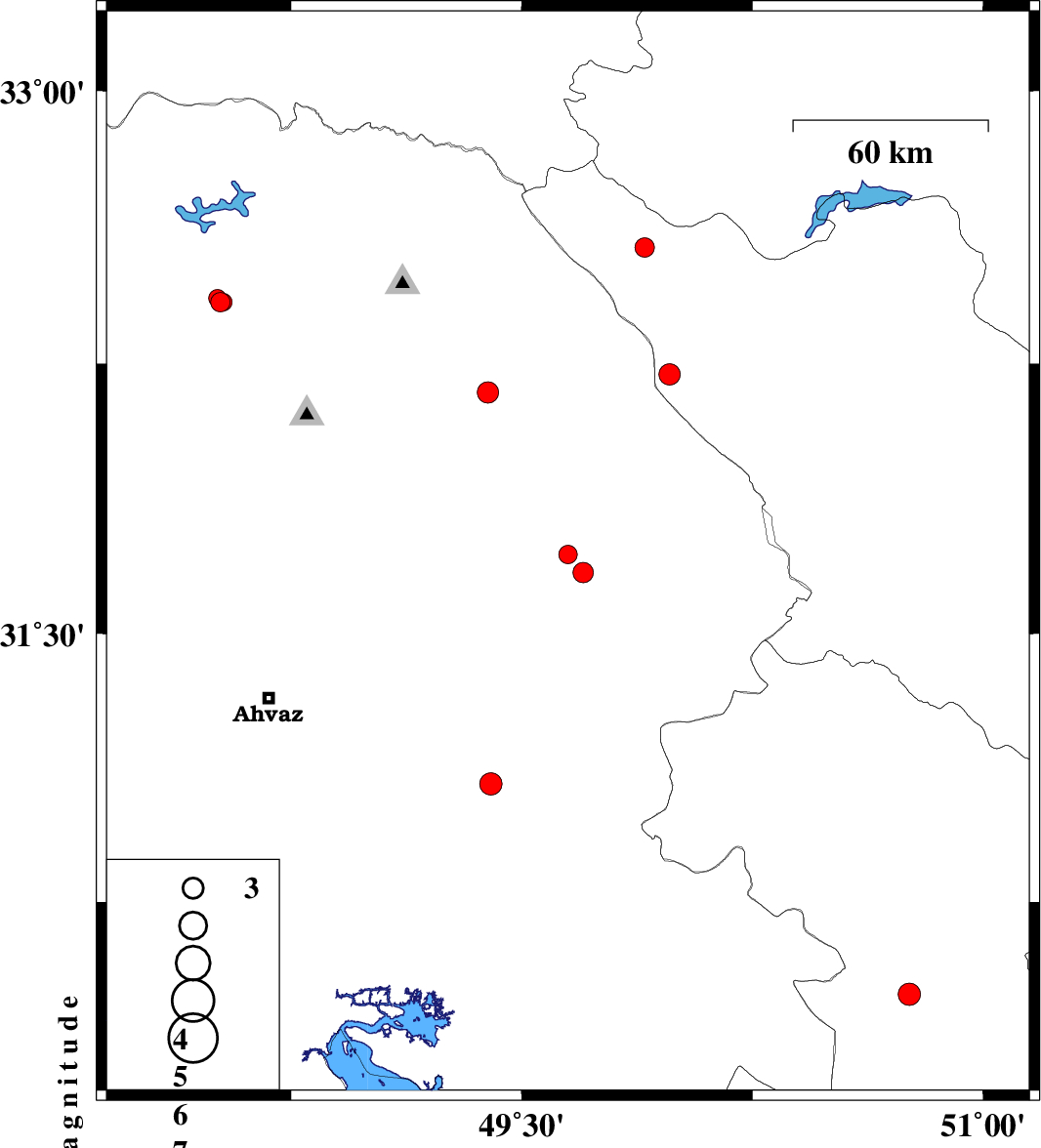 2010/01/30 | 11:56:46.3 | 15:26:46.3 | 31.08 | 49.4 | 37 | ML3.3 | 29 km South-West of Ramhormoz, Khoozestan Province | ||