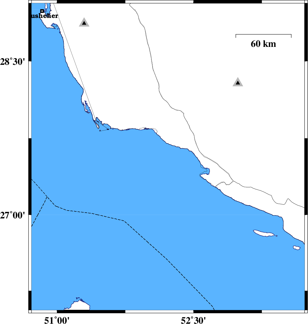 2010/02/04 | 23:40:08.6 | 03:10:08.6 | 27.48 | 52.54 | 20 | ML3.3 | Persian Gulf, 35 km West of Mehr | ||
