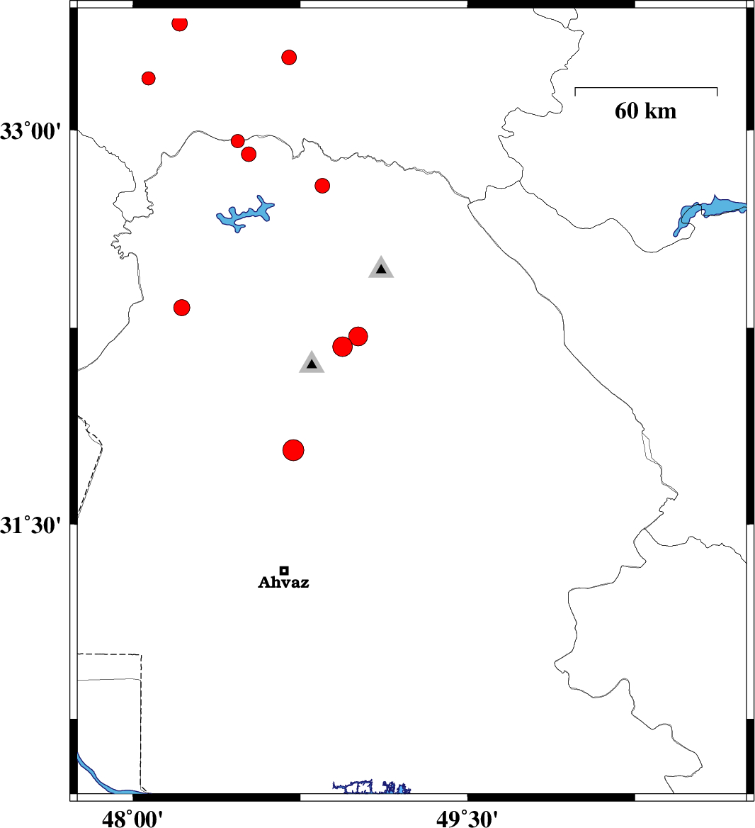 2010/01/21 | 10:30:57.1 | 14:00:57.1 | 30.85 | 48.84 | 15 | ML3.2 | 29 km North-East of Shadegan, Khoozestan Province | ||