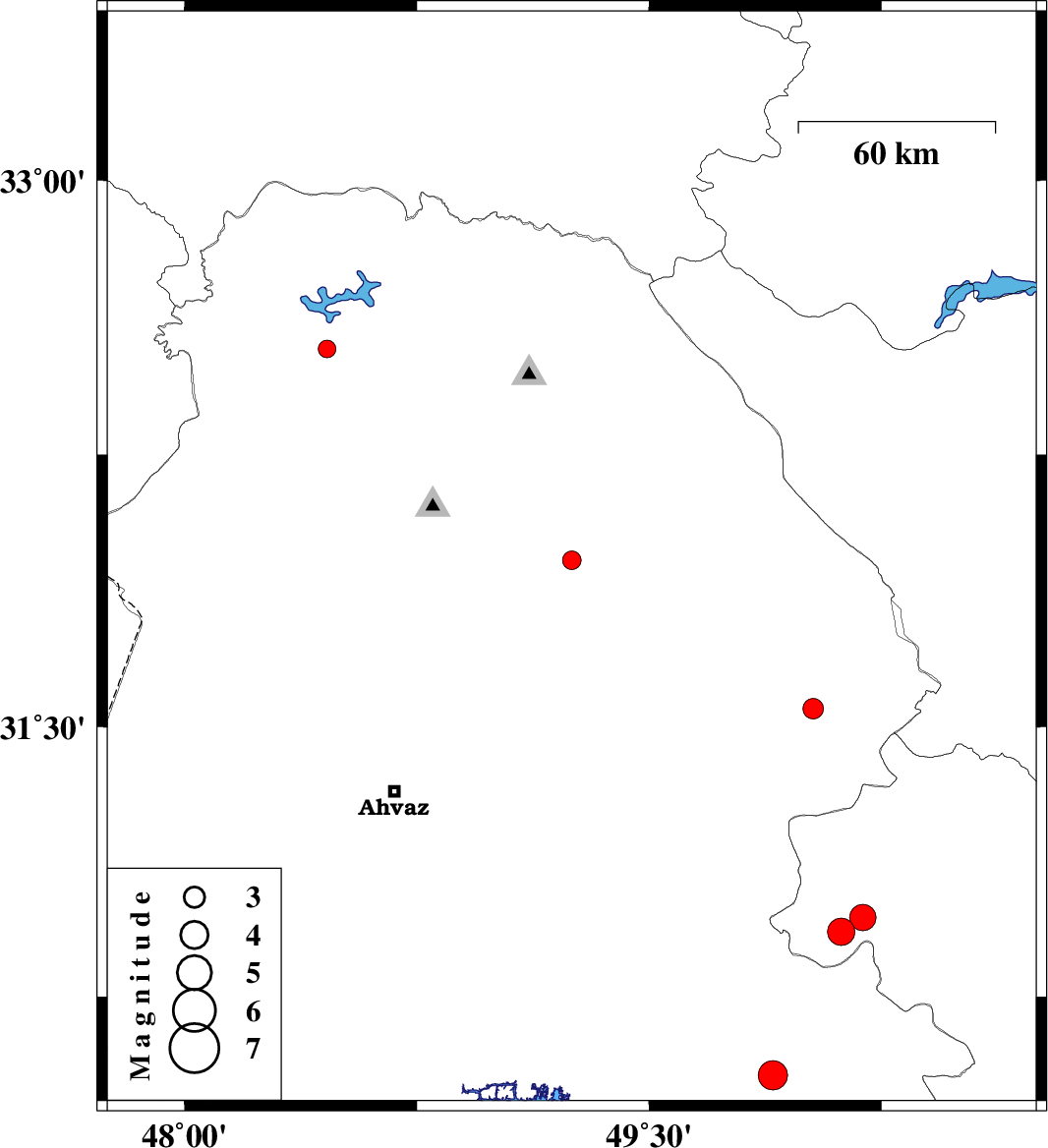 2010/02/08 | 21:55:27.3 | 01:25:27.3 | 31.55 | 50.03 | 14 | ML:2.9 | 13 km East of Bagh Malek, Khoozestan Province | ||
