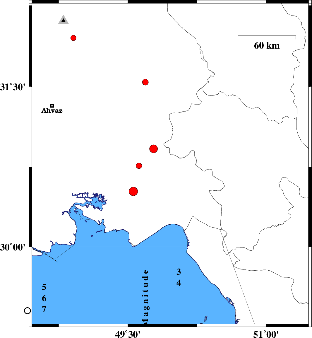 2010/02/11 | 21:07:52.6 | 00:37:52.6 | 30.93 | 50.12 | 15 | ML3.9 | 39 km North-West of Behbahan, Khoozestan Province | ||
