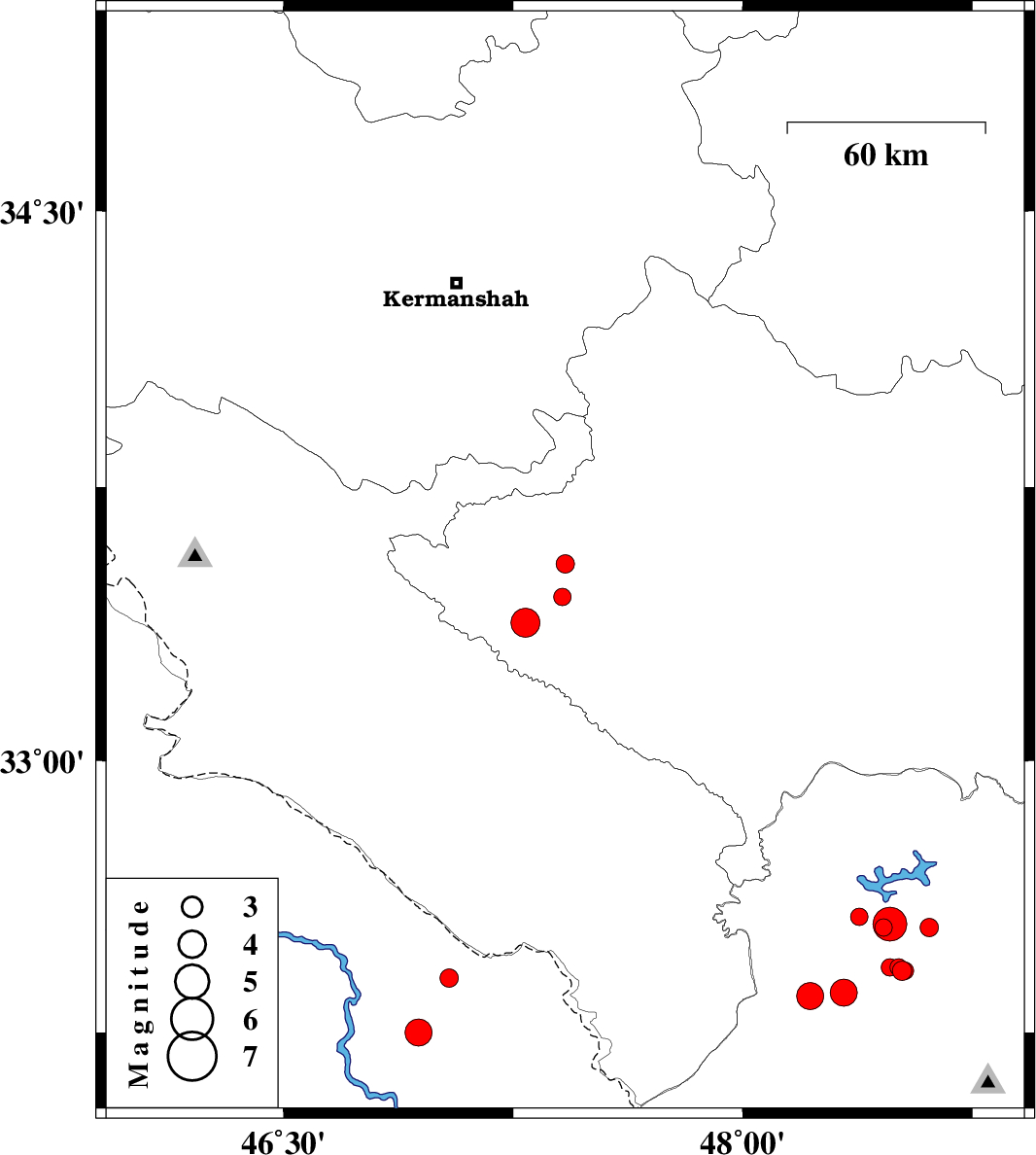 2010/02/11 | 16:35:06.9 | 20:05:06.9 | 33.45 | 47.41 | 14 | ML2.5 | 21 km West of Kuhdasht, Lorestan Province | ||