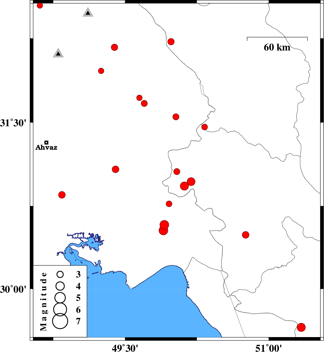 2010/02/08 | 21:55:27.3 | 01:25:27.3 | 31.55 | 50.03 | 14 | ML2.9 | 13 km East of Bagh Malek, Khoozestan Province | ||