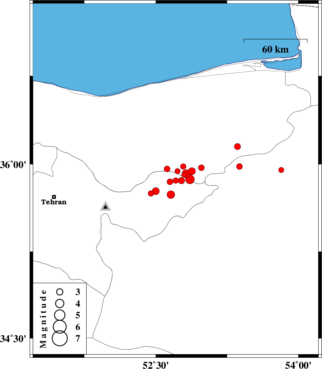 2010/01/20 | 17:37:30.1 | 21:07:30.1 | 35.94 | 52.88 | 6 | ML3.4 | 23 km North-East of Firuzkuh, Tehran Province | ||