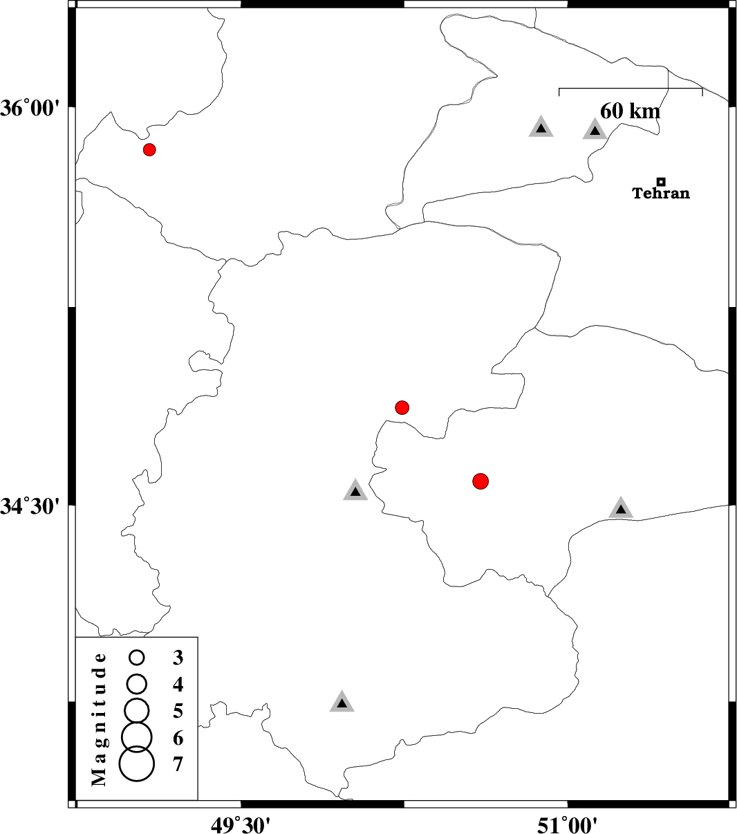 2010/02/18 | 15:21:13.2 | 18:51:13.2 | 34.87 | 50.24 | 14 | ML2.8 | 20 km South-West of Saveh, Markazi Province | ||