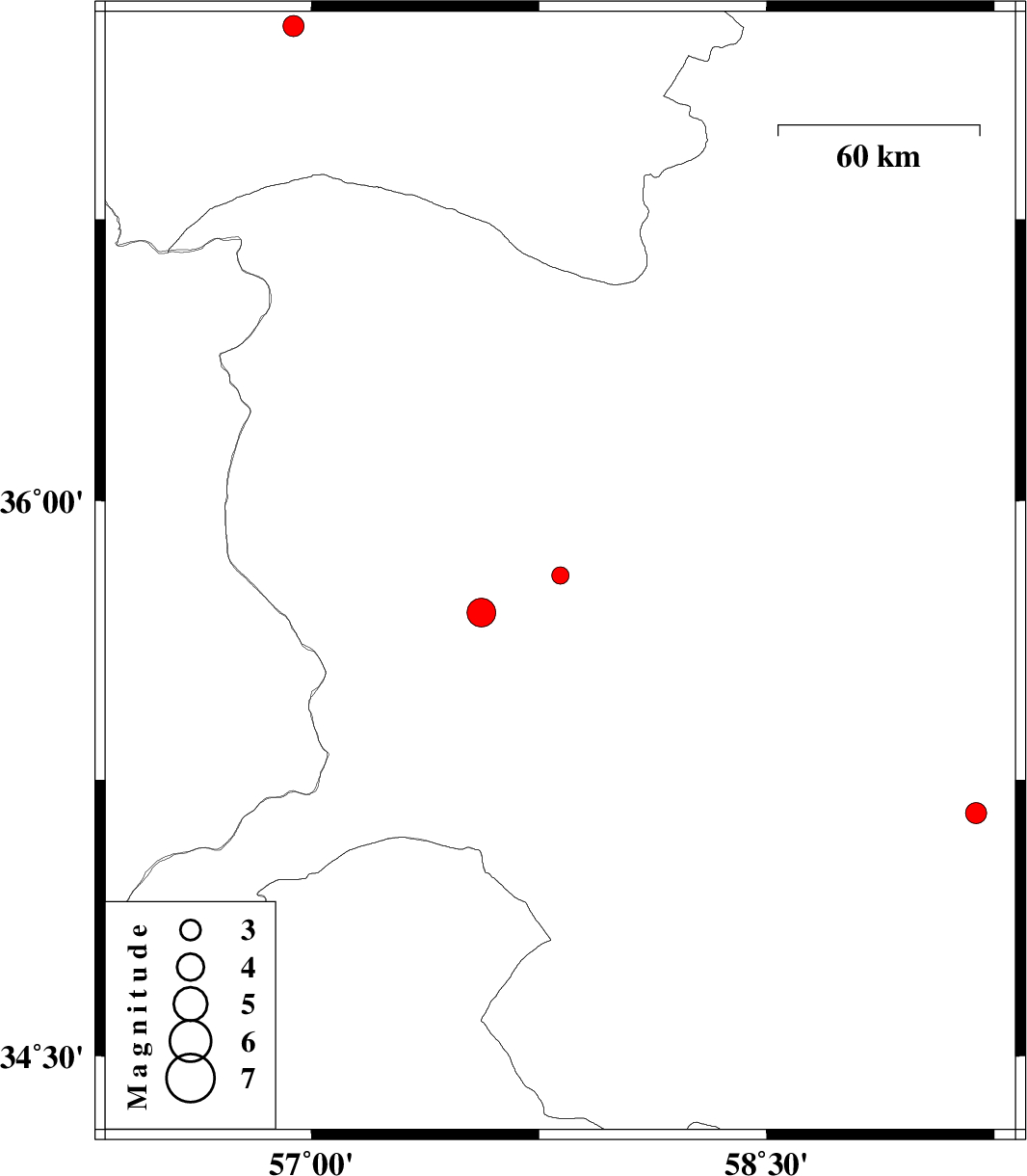 2010/02/25 | 19:35:55.6 | 23:05:55.6 | 35.8 | 57.82 | 15 | ML:2.5 | Khorasan(center) Province, 47 km South-East of Sabzevar | ||