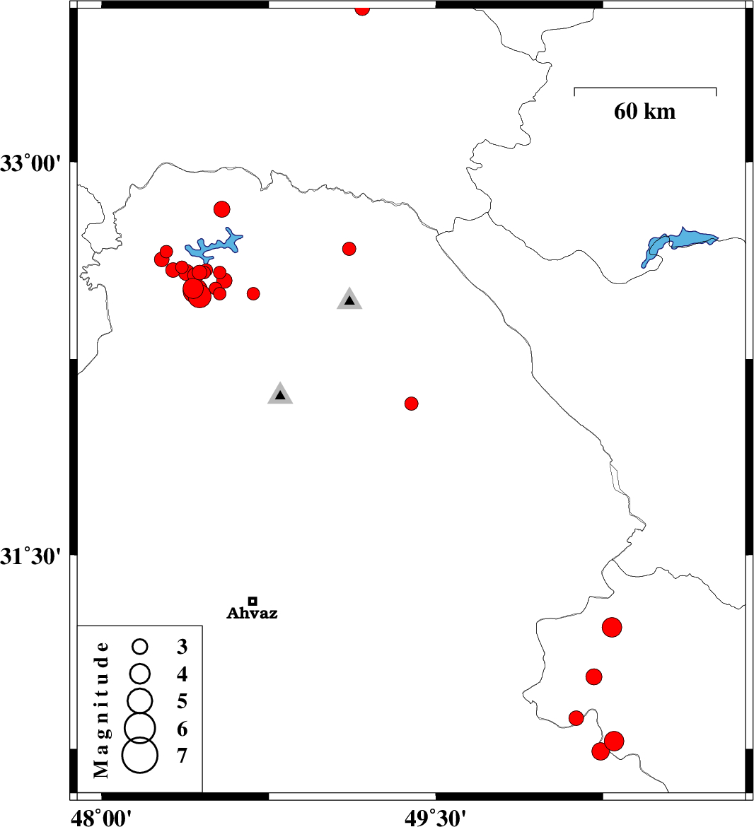 2010/02/20 | 09:36:44.3 | 13:06:44.3 | 31.22 | 50.29 | 33 | ML4 | 49 km South-East of Bagh Malek, Khoozestan Province | ||