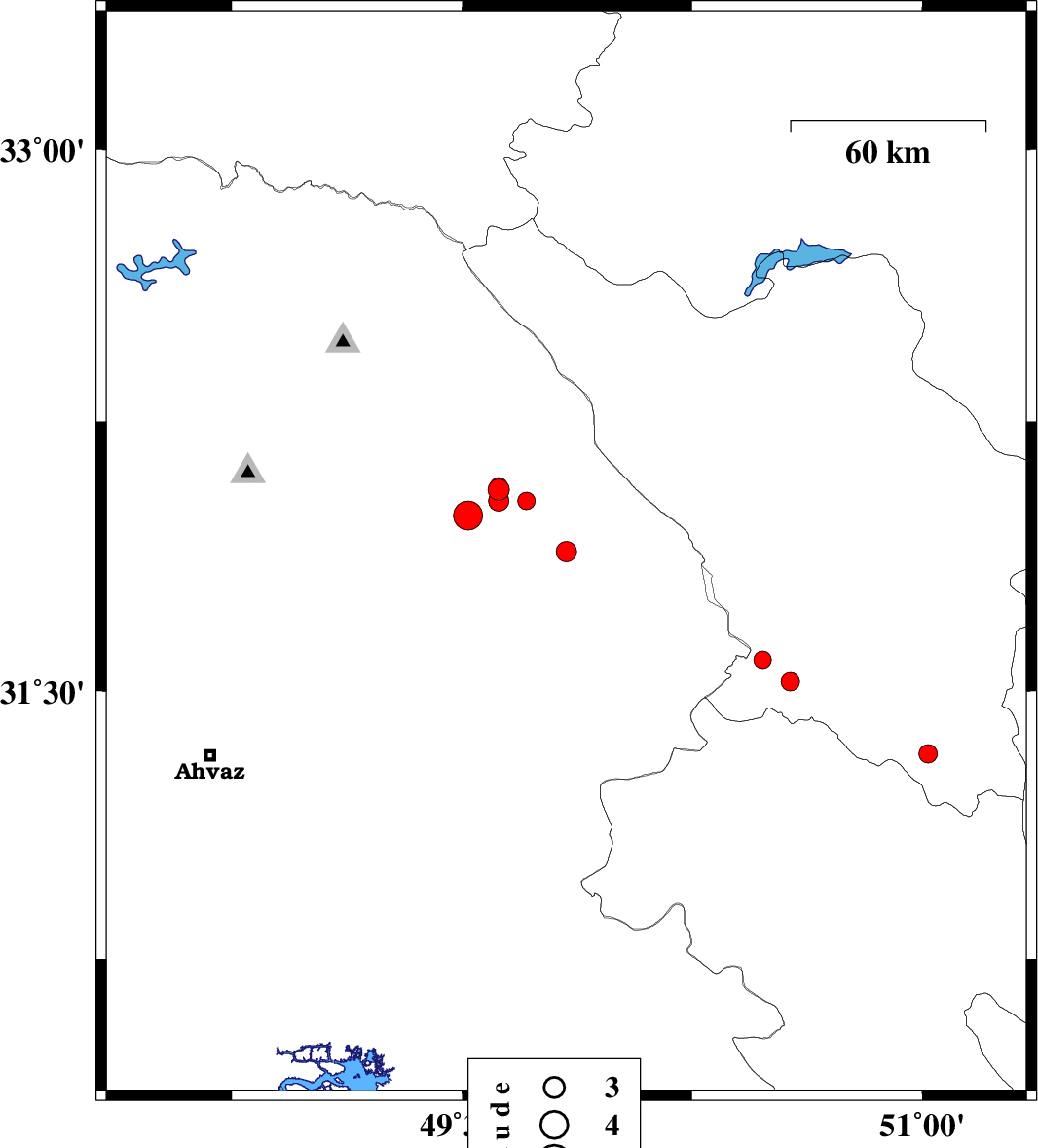 2010/03/04 | 02:22:06.9 | 05:52:06.9 | 32.62 | 48.44 | 10 | ML2.5 | Khoozestan Province, 19 km North of Andimeshk | ||