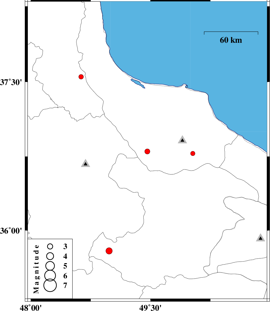 2010/02/06 | 18:17:33.8 | 21:47:33.8 | 36.78 | 50.03 | 14 | ML:2.6 | 36 km South-West of Amlash, Gilan Province |