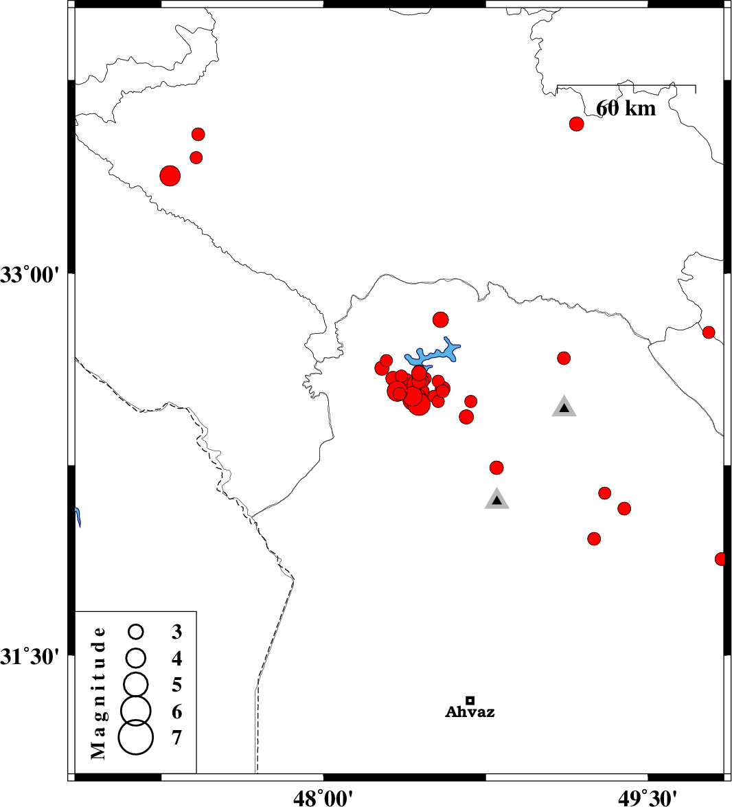 2010/02/11 | 16:35:06.9 | 20:05:06.9 | 33.45 | 47.41 | 14 | ML2.5 | 21 km West of Kuhdasht, Lorestan Province | ||