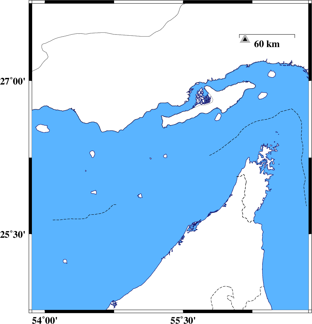 | 2010/03/14 | 15:50:59.8 | 19:20:59.8 | 26.25 | 55.36 | 18 | ML3.1 | Persian Gulf, 53 km North-East of Abu Musa | ||