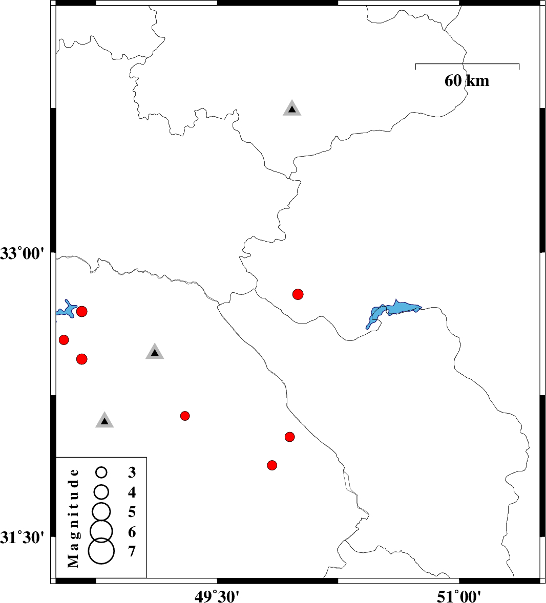 2010/03/29 | 03:53:05.0 | 08:23:05.0 | 32.78 | 50 | 15 | ML2.9 | Esfahan Province, 20 km South-West of Fereydunshahr | ||