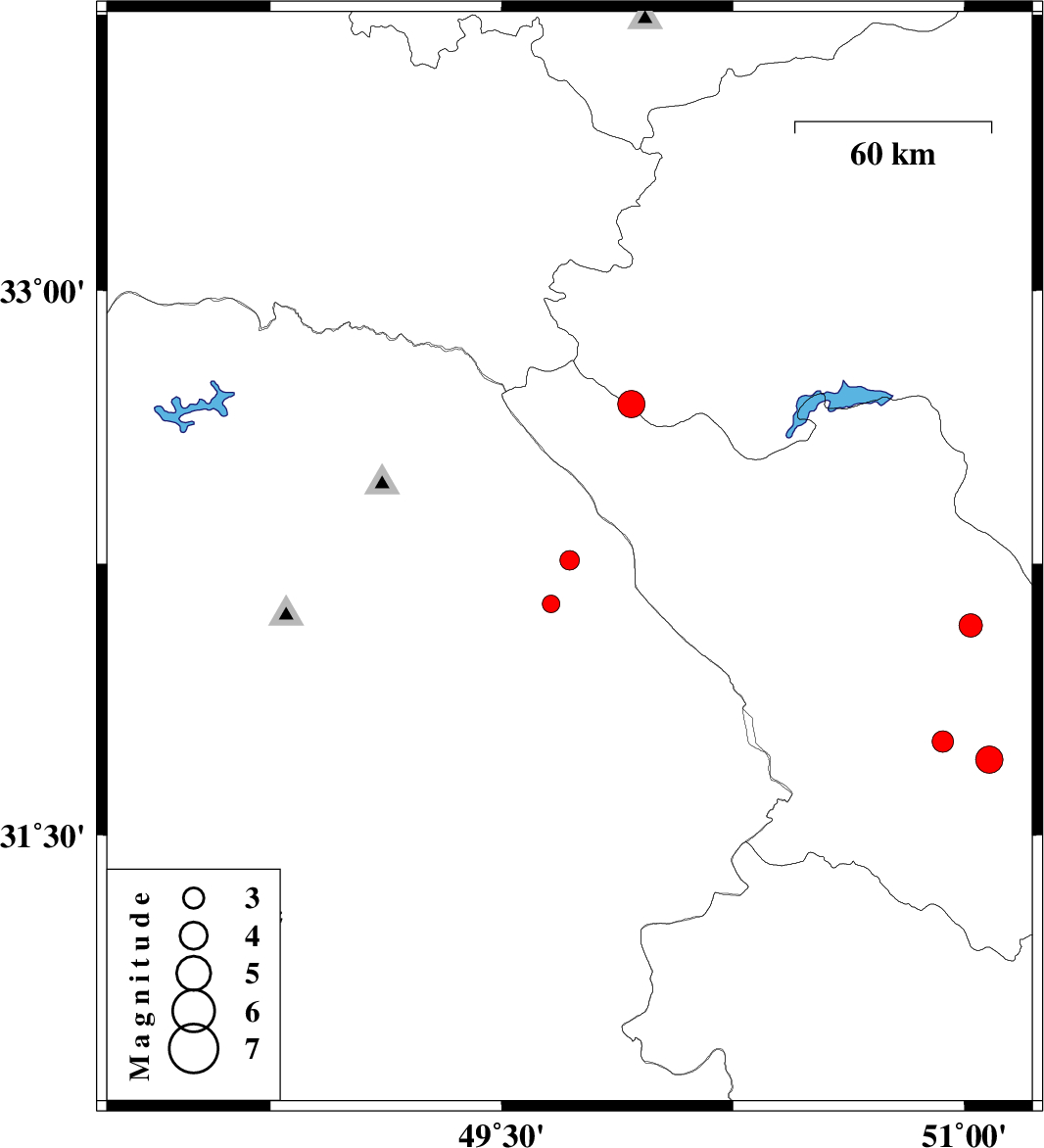2009/07/10 | 04:05:12.4 | 08:35:12.4 | 32.69 | 49.92 | 14 | ML4 | Esfahan Province, 31 km North-West of Chelgard | ||