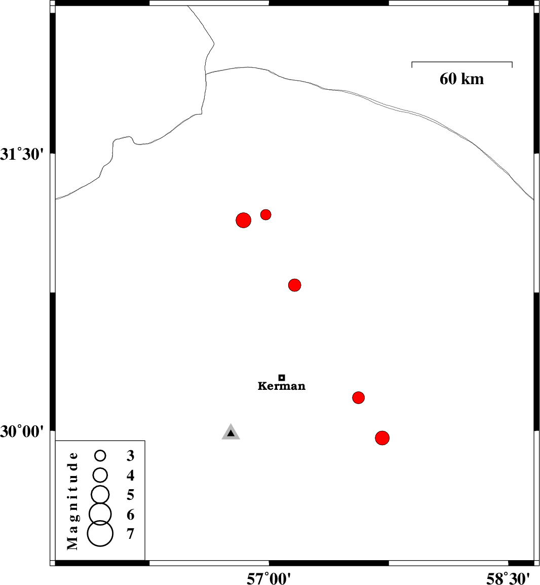 2009/06/24 | 20:50:22.0 | 01:20:22.0 | 29.96 | 57.71 | 18 | ML4 | 70 km South-East of Kerman, Kerman Province |