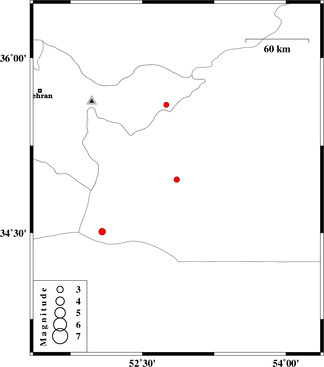 2009/07/12 | 17:07:14.4 | 21:37:14.4 | 34.51 | 52.08 | 17 | ML3.3 | Semnan Province, 82 km South-West of Garmsar |