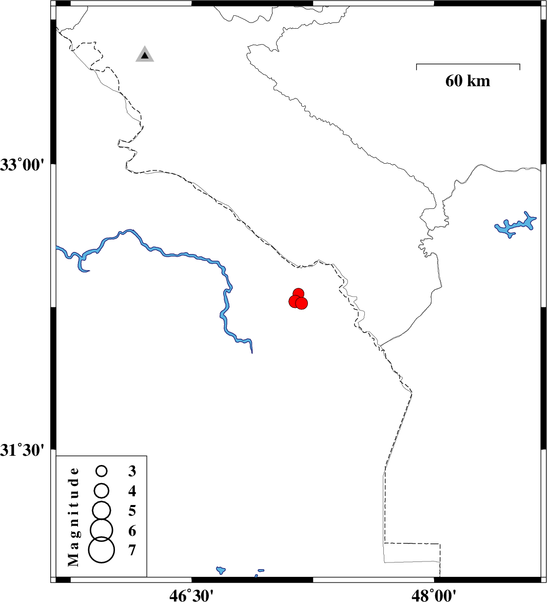 2009/08/05 | 22:55:40.5 | 03:25:40.5 | 32.28 | 47.14 | 16 | ML3.5 | Iraq, 47 km South-West of Dehloran | ||
