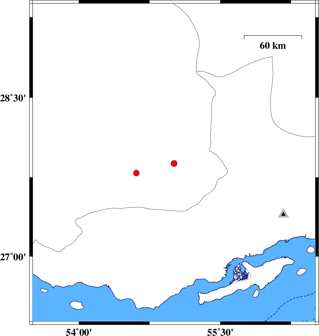 2009/08/06 | 07:36:36.1 | 12:06:36.1 | 27.88 | 55.01 | 14 | ML3 | Fars Province, 70 km North-East of Lar | ||