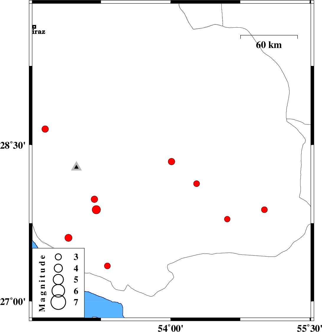 2009/07/21 | 01:49:07.8 | 06:19:07.8 | 27.34 | 53.32 | 37 | ML2.9 | Fars Province, 15 km East of Lamerd | ||
