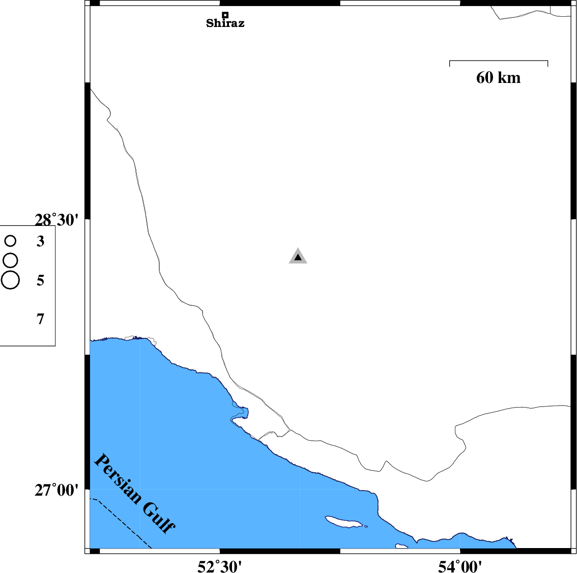 2009/08/10 15:06:12.7 19:36:12.7 27.6753.120 ML3.8 Fars Province, 25 km North-East of Mehr