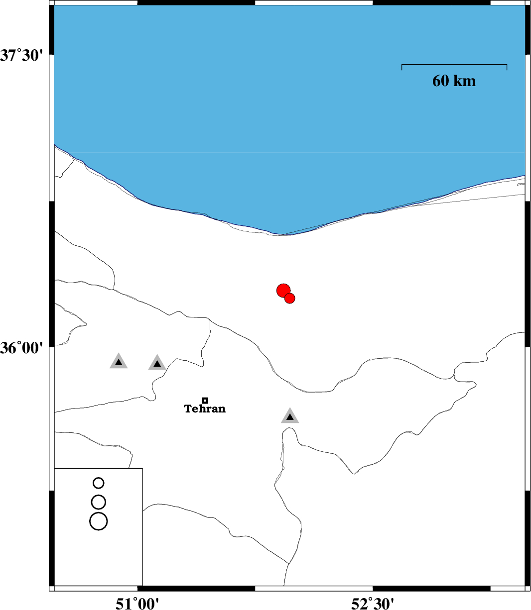 2009/08/13 | 13:57:45.4 | 18:27:45.4 | 36.29 | 51.93 | 14 | ML3.9 | Mazandaran Province, 33 km South-West of Nur |