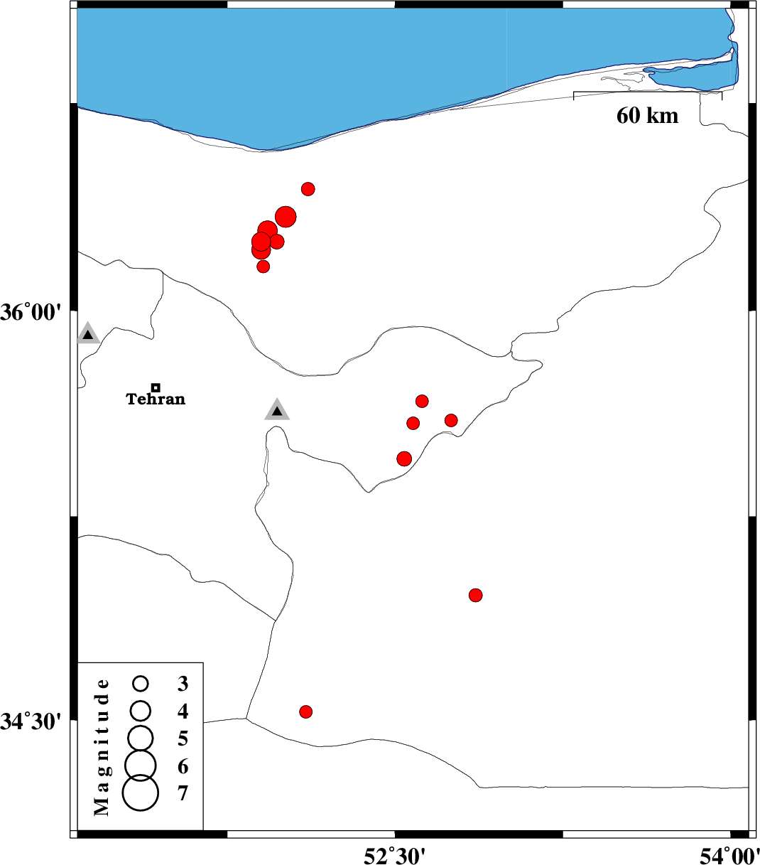 2009/08/15 | 04:10:54.2 | 08:40:54.2 | 36.16 | 51.91 | 6 | ML2.5 | Mazandaran Province, 47 km South-West of Nur | ||