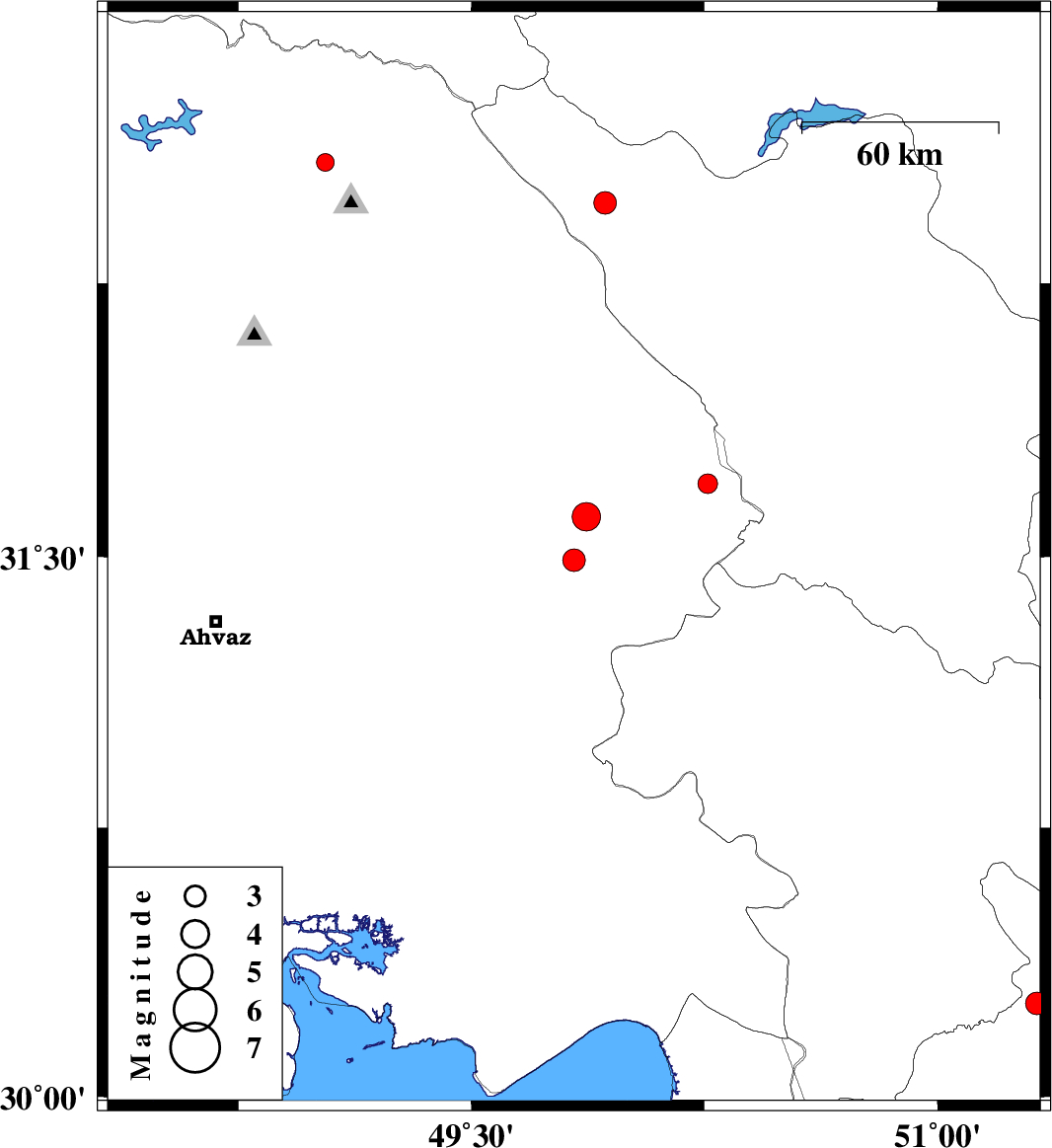 2009/08/12 | 01:02:34.2 | 05:32:34.2 | 31.7 | 50.26 | 14 | ML2.8 | Khoozestan Province, 39 km South-East of Izeh | ||