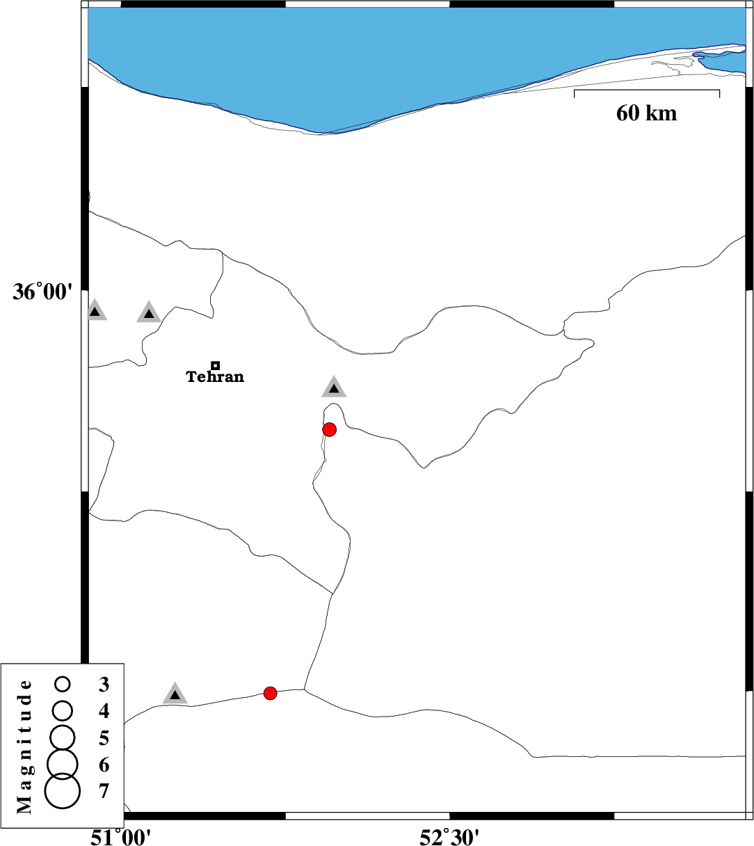 2009/08/19 | 15:59:41.6 | 20:29:41.6 | 34.55 | 52.08 | 34 | ML2.7 | Semnan Province, 78 km South-West of Garmsar |