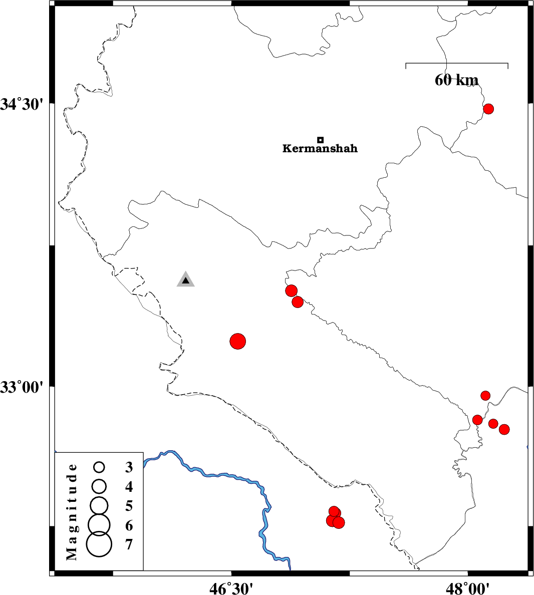2009/08/30 | 09:13:16.0 | 13:43:16.0 | 34.47 | 48.13 | 43 | ML2.9 | Hamedan Province, 17 km East of Kangavar | ||