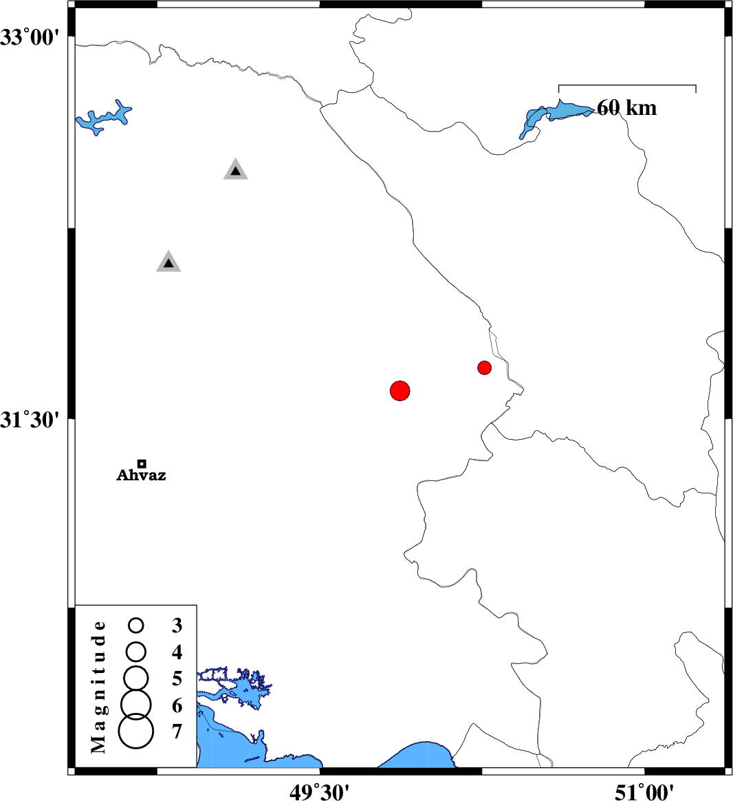 2009/08/12 | 01:02:34.2 | 05:32:34.2 | 31.7 | 50.26 | 14 | ML2.8 | Khoozestan Province, 39 km South-East of Izeh |