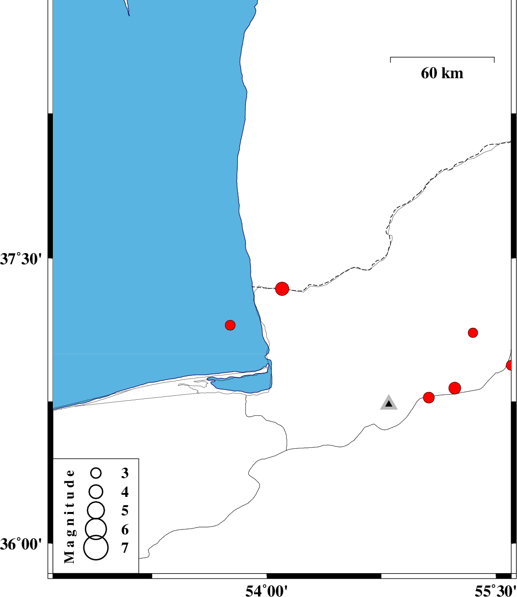 2009/08/11 | 23:03:54.8 | 03:33:54.8 | 37.15 | 53.76 | 36 | ML3 | Caspian Sea, 39 km North-West of Bandar-e torkaman | ||