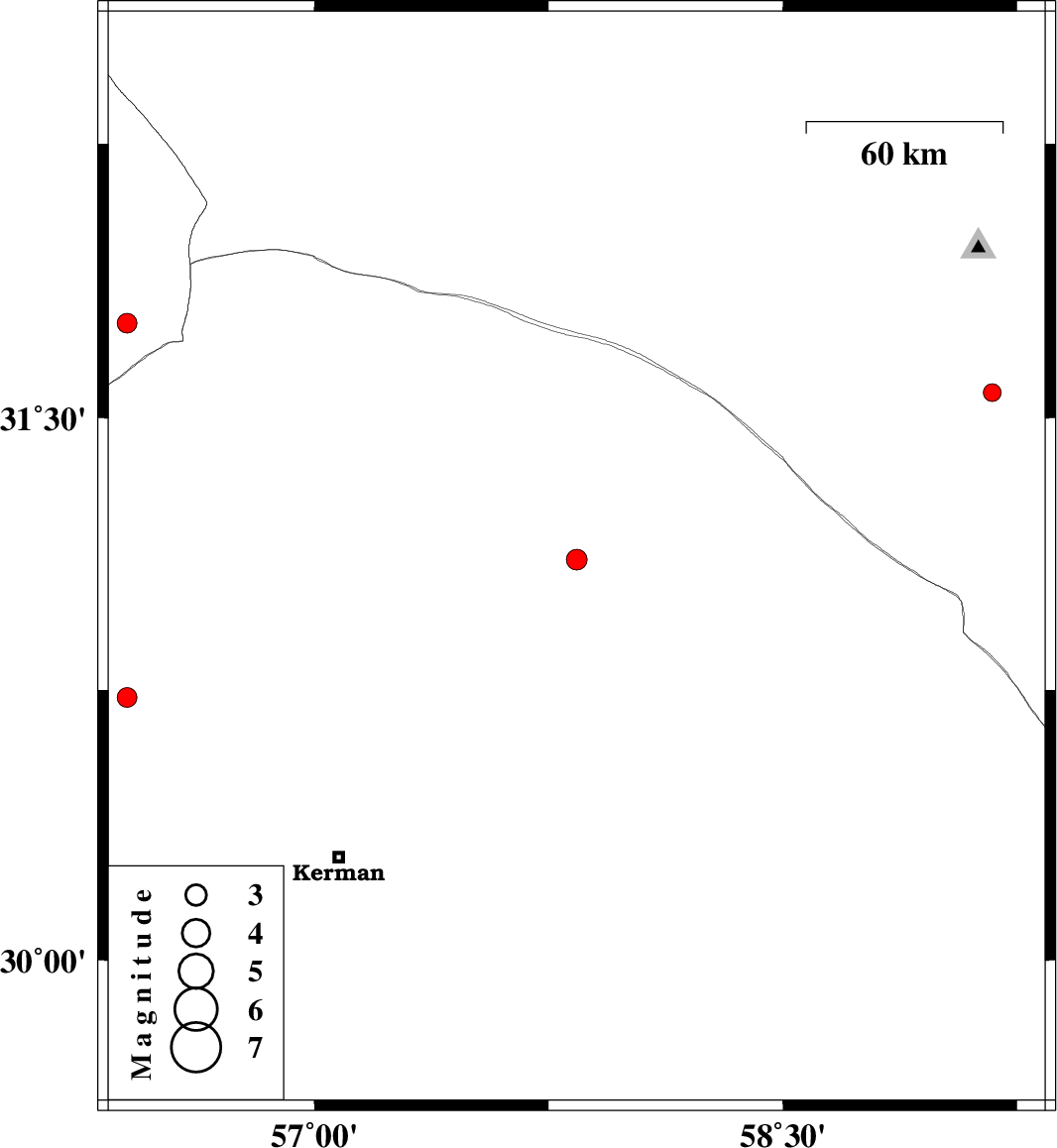 2009/09/10 | 08:06:39.7 | 12:36:39.7 | 31.11 | 57.84 | 18 | ML3 | Kerman Province, 99 km South-East of Ravar | ||