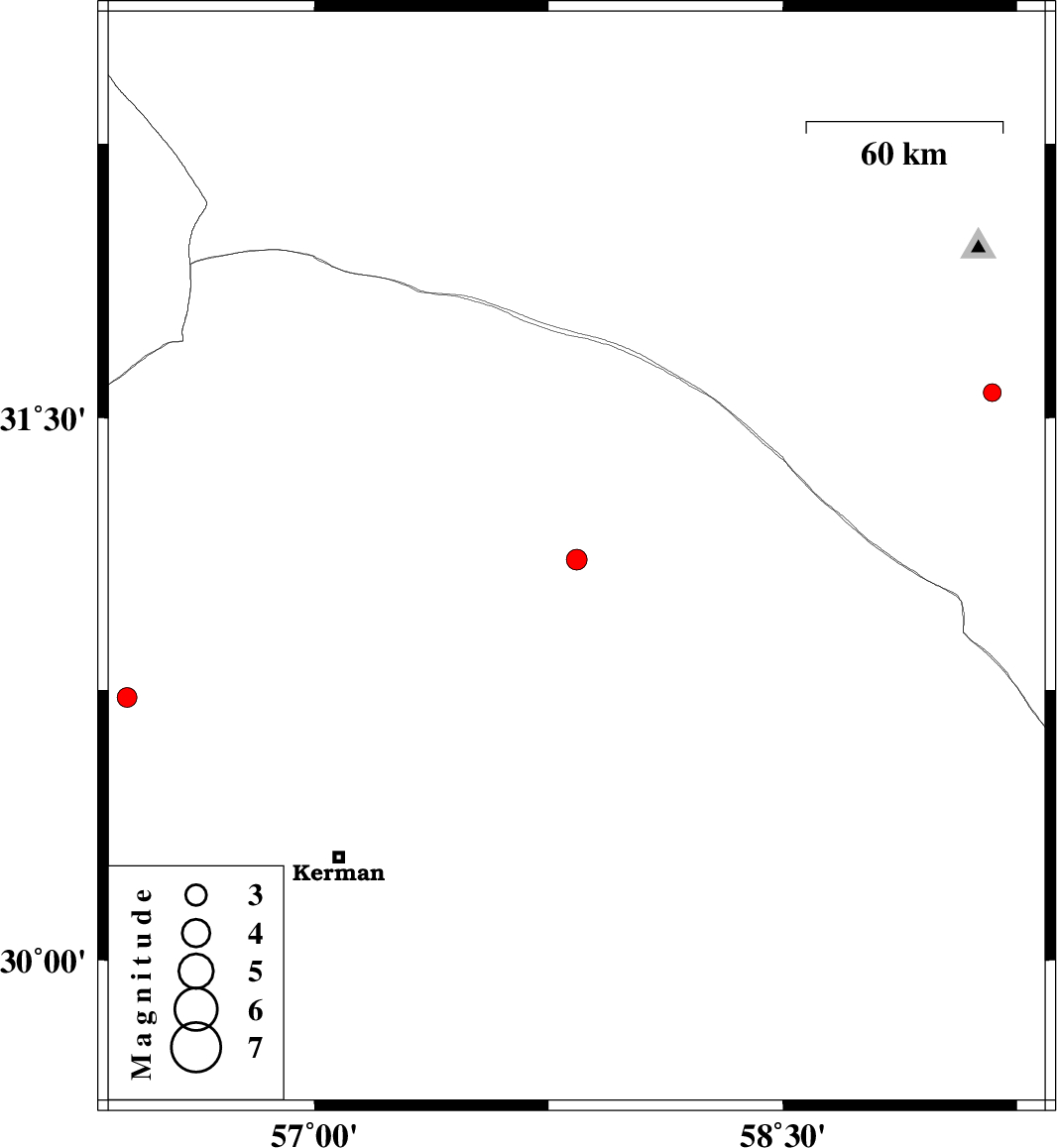 2009/09/10 | 08:06:39.7 | 12:36:39.7 | 31.11 | 57.84 | 18 | ML3 | Kerman Province, 99 km South-East of Ravar | ||
