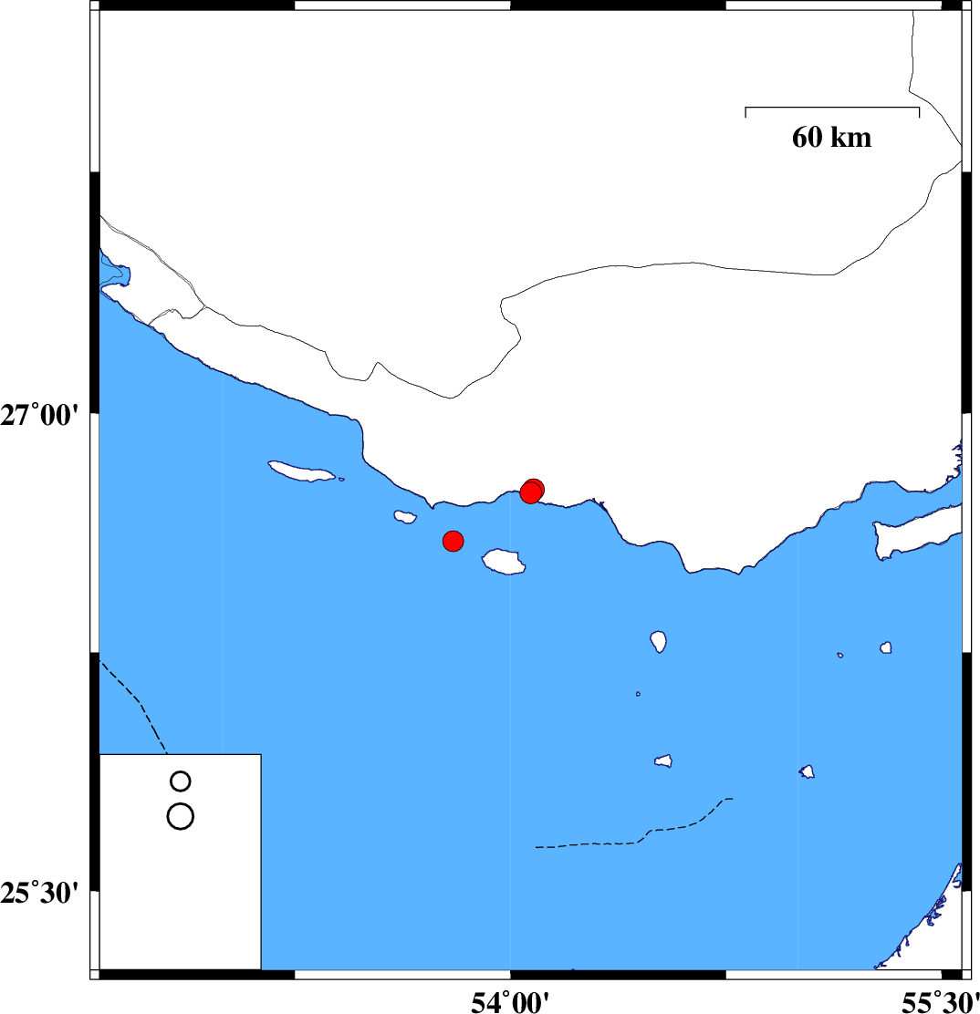 2009/09/08 | 08:26:50.4 | 12:56:50.4 | 26.6 | 53.8 | 46 | ML3.2 | Persian Gulf |