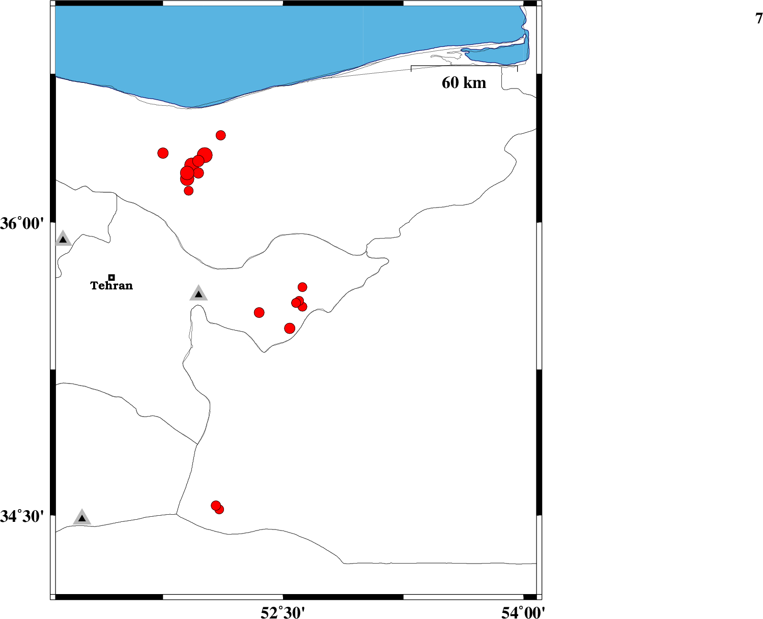 2009/08/15 | 04:10:54.2 | 08:40:54.2 | 36.16 | 51.91 | 6 | ML2.5 | Mazandaran Province, 47 km South-West of Nur | ||