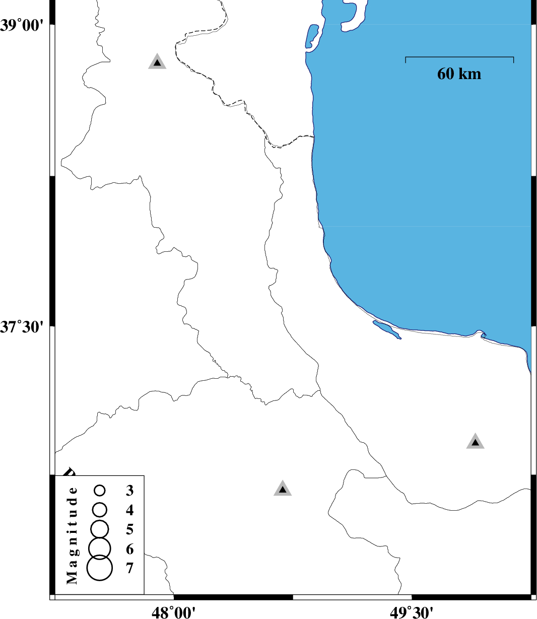 2009/09/11 | 18:09:42.3 | 22:39:42.3 | 37.64 | 48.75 | 15 | ML3.6 | Gilan Province, 20 km East of Khalkhal |