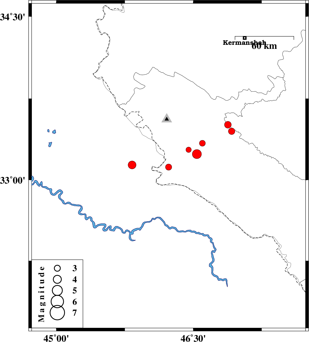 2009/08/30 | 14:04:37.4 | 18:34:37.4 | 33.24 | 46.54 | 14 | ML4.5 | Ilam Province, 37 km North-East of Mehran | ||