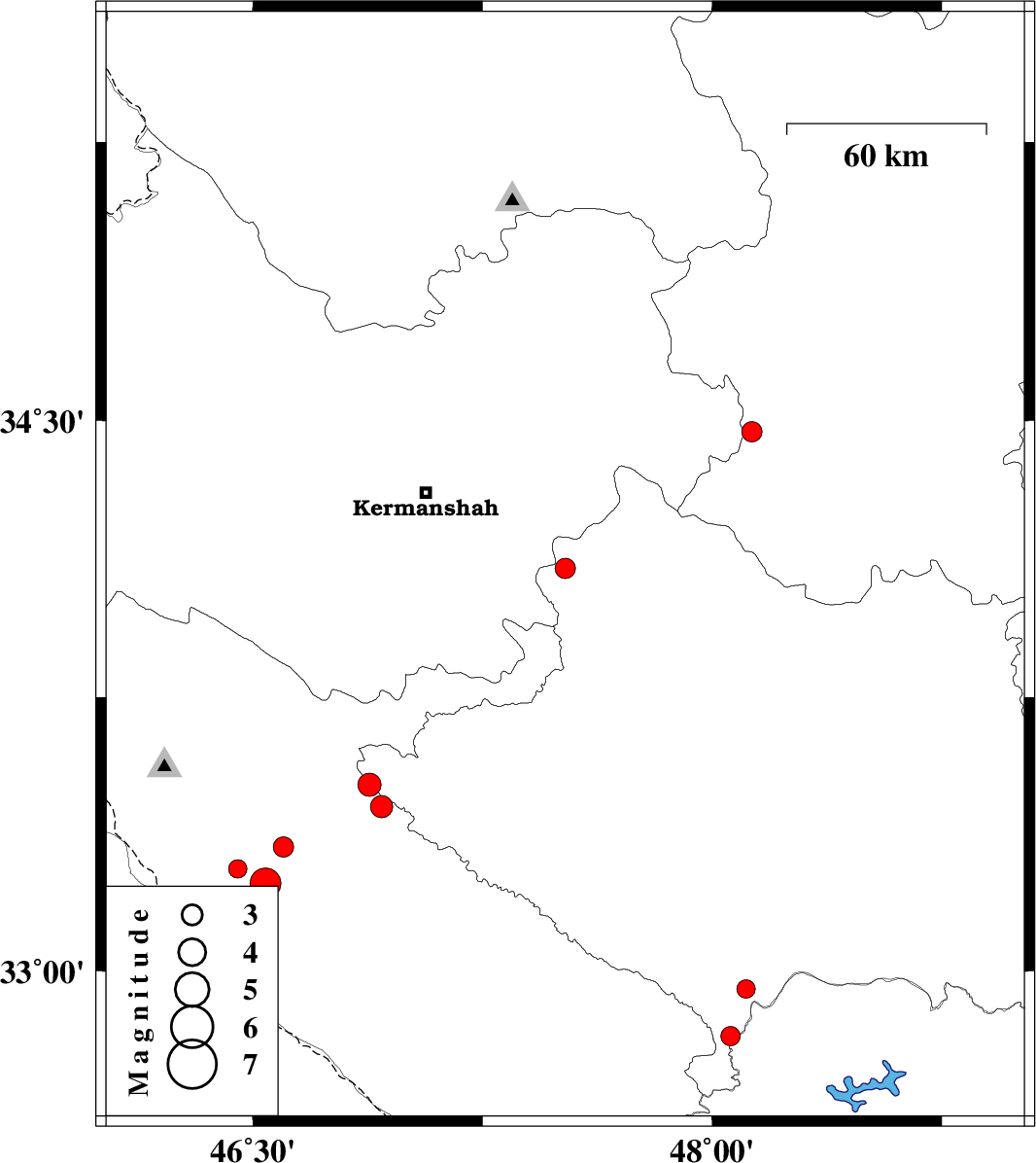 2009/08/30 | 09:13:16.0 | 13:43:16.0 | 34.47 | 48.13 | 43 | ML2.9 | Hamedan Province, 17 km East of Kangavar | ||