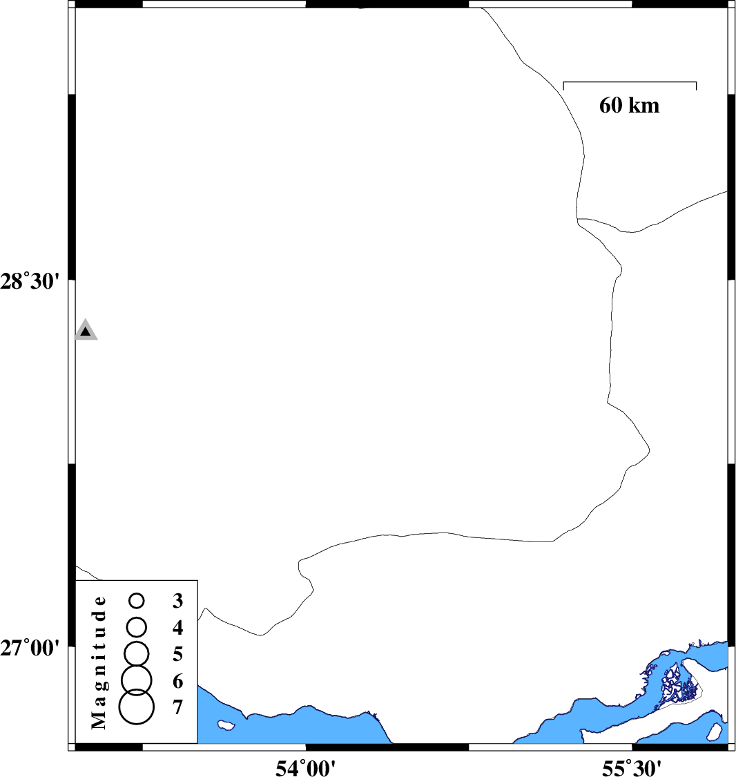 2009/09/27 | 06:20:05.6 | 09:50:05.6 | 28.1 | 54.44 | 7 | ML2.8 | Fars Province, 48 km North of Lar |