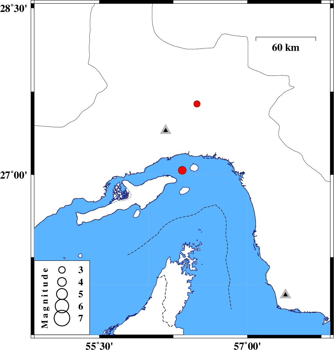 2009/09/29 | 05:08:03.7 | 08:38:03.7 | 27.04 | 56.34 | 16 | ML3.7 | Persian Gulf, 12 km Qeshm | ||