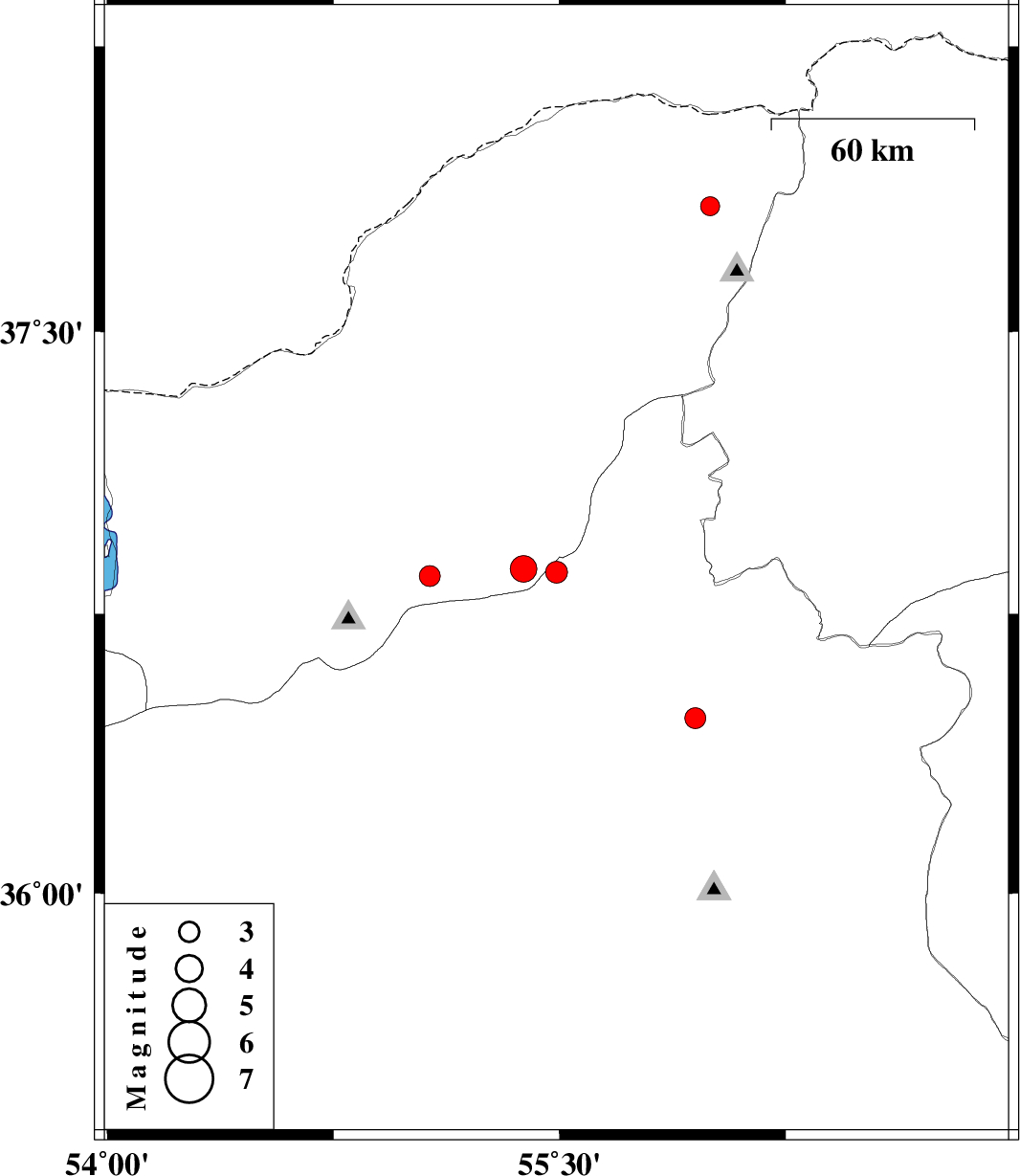 2009/09/29 06:32:04.5 10:02:04.5 36.8755.3814 ML4 Golestan Province, 40 km South of Minodasht